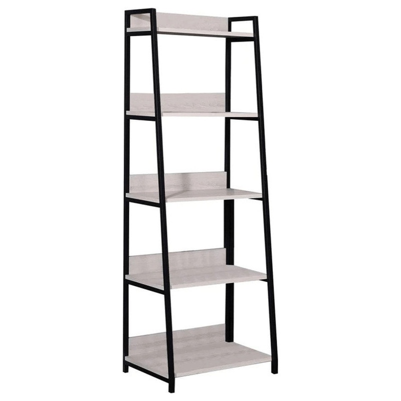 The 67-inch natural and black metal five tier ladder bookcase offers you storage and display space in a good looking and refined manor. Features 5 shelf tiers for storing books, displaying photographs, plants, or other decorations. Great to use independent