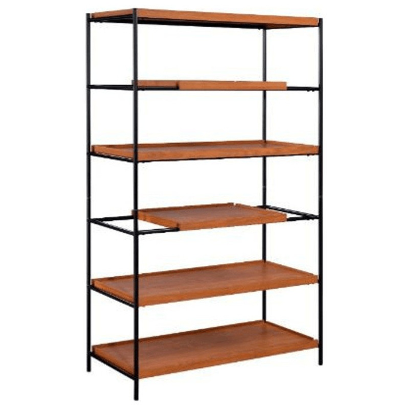 Sturdy and built to last, this 70-inch brown and black metal six tier etagere bookcase helps you display your books, files, photos, and treasures in an organized fashion. The functional 6 shelf tiers offer fantastic storage space. Great to use independentl
