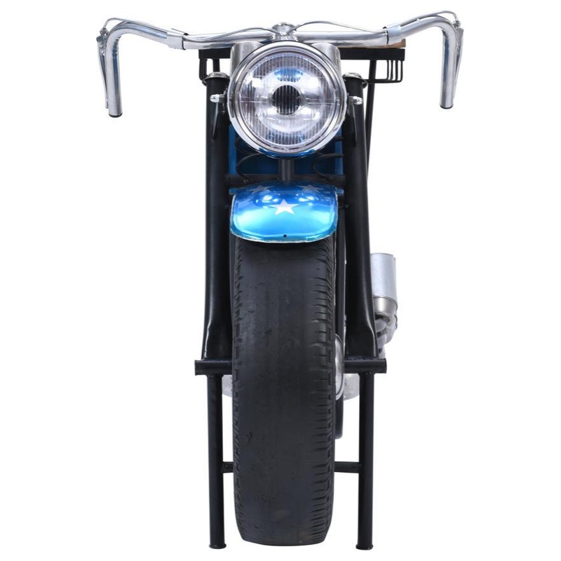 Elevate your home’s ambiance with the Glory Days American Flag Motorcycle Console Bar Table. Crafted for enthusiasts of both design and libations, this distinctive piece seamlessly combines style and functionality. The console bar, adorned with a captivating American flag pattern on the motorcycle frame, stands as a tribute to timeless patriotism. Genuine rubber wheels add a touch of authenticity, making it a conversation starter in any lounge or living room.Designed for the ultimate hosting experience, this bar table features integrated glassware storage and wine racks, ensuring your favorite beverages are always within reach. The meticulously detailed motorcycle includes a metal ice bucket, perfect for keeping your drinks refreshingly cold. Embrace the spirit of adventure and hospitality with this exceptional creationa tasteful blend of craftsmanship and American heritage.