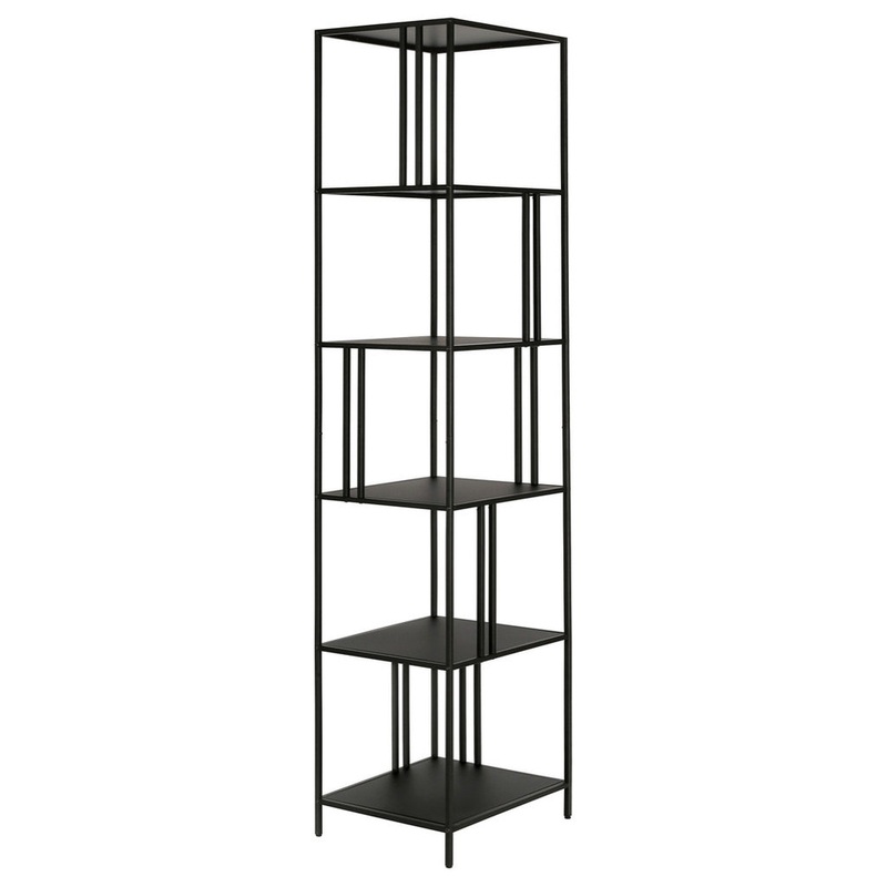 This 76-inch black metal five tier etagere bookcase is a fresh and updated way to help you keep your space neat and organized. The functional 5 shelf tiers offer fantastic storage space. This bookcase is perfect for use alone or in multiples in most any living or office space. Carefully crafted to fit in tight spaces, you can turn almost any nook into a stunning display showcase for books, plants decor and more. 76-inch H x 18-inch W x 15-inch D