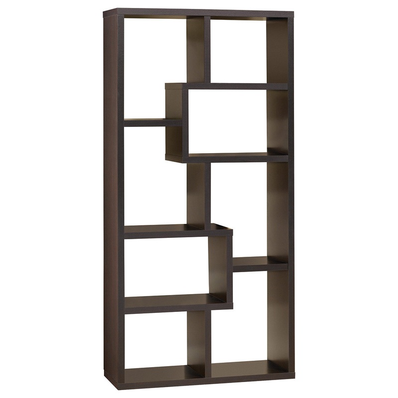 The unique and simple design of the bookshelf makes it applicable to all of your working or living spaces, such as living room, bedroom, office and so on. Featuring eight convenient shelves, it offers lots of space for storage. The shelves are arranged in a bold, geometric design, giving it a modern appearance. Finish in rich cappuccino wood finish. Constructed from high-quality materials, this bookcase is a safe spot to store your most precious belongings.