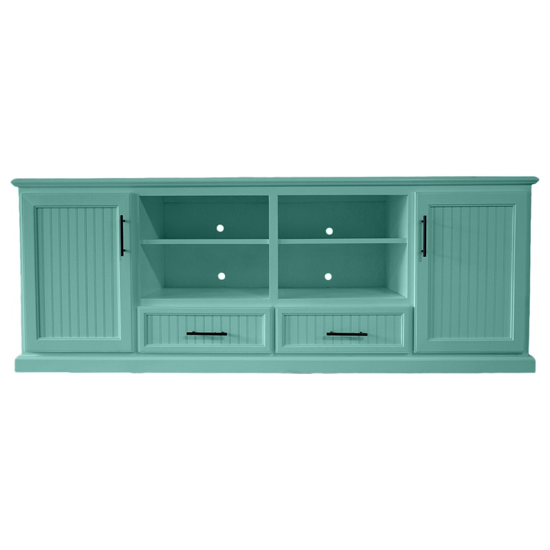 -Please view secondary photo for color option being chosen -Please be advised Natural Wood Variations can cause color variations -Constructed of solid Wood and cabinet grade plywood -80" TV stand -4 fixed shelves -2 drawers -Fully assembled -Made in Americ
