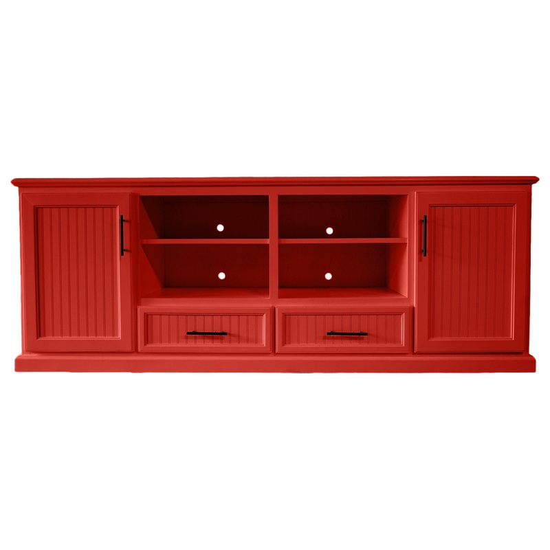 -Please view secondary photo for color option being chosen -Please be advised Natural Wood Variations can cause color variations -Constructed of solid Wood and cabinet grade plywood -80" TV stand -4 fixed shelves -2 drawers -Fully assembled -Made in Americ