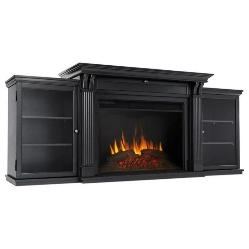 84″ Black Modern Wood TV Stand with Electric Fireplace and Glass Door Cabinets – Traditional – Entertainment Centers And Tv Stands – by Declusia