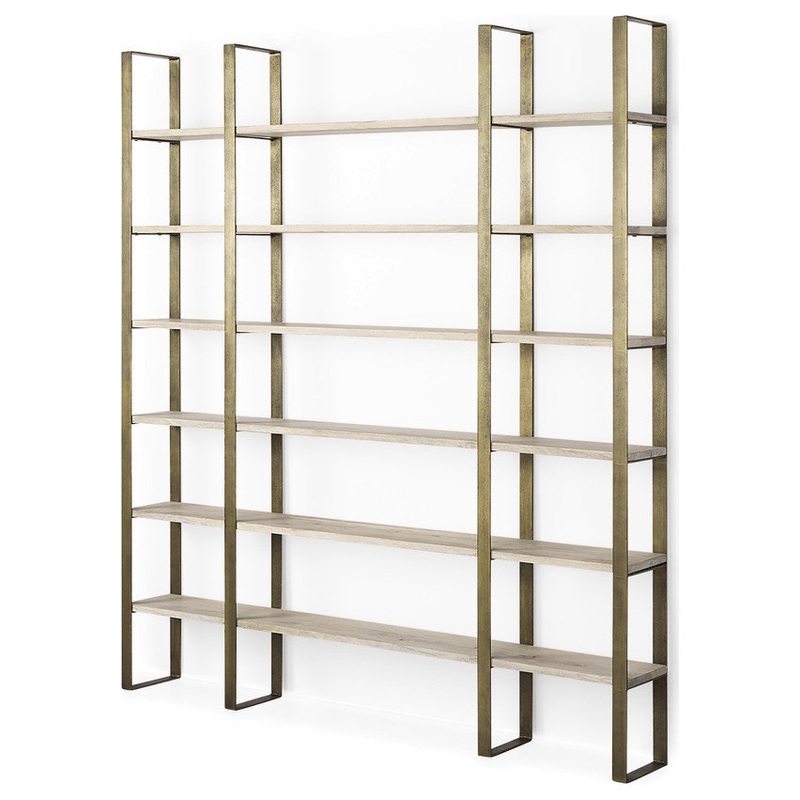 90″ Gold and Natural Distressed Iron and Solid Wood Six Tier Bookcase – Contemporary – Bookcases – by HomeRoots
