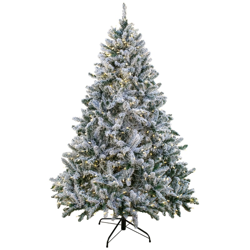 The Snowy Hudson tree features flocked branches for the look of freshly fallen snow and PowerConnect through-the-pole lighting system that eliminates the need for connecting multiple light strings. It is pre-lit with 1200 warm white LED lights that are long lasting and energy efficient. Crafted with high quality materials and hinged branches for easy set up and includes a sturdy metal folding stand. For indoor display only.