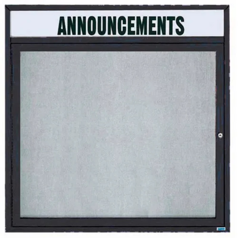 Aarco 1 Door Enclosed Alum Framed Bulletin Board w/ Header, Illum Black – 36″W x 36″H