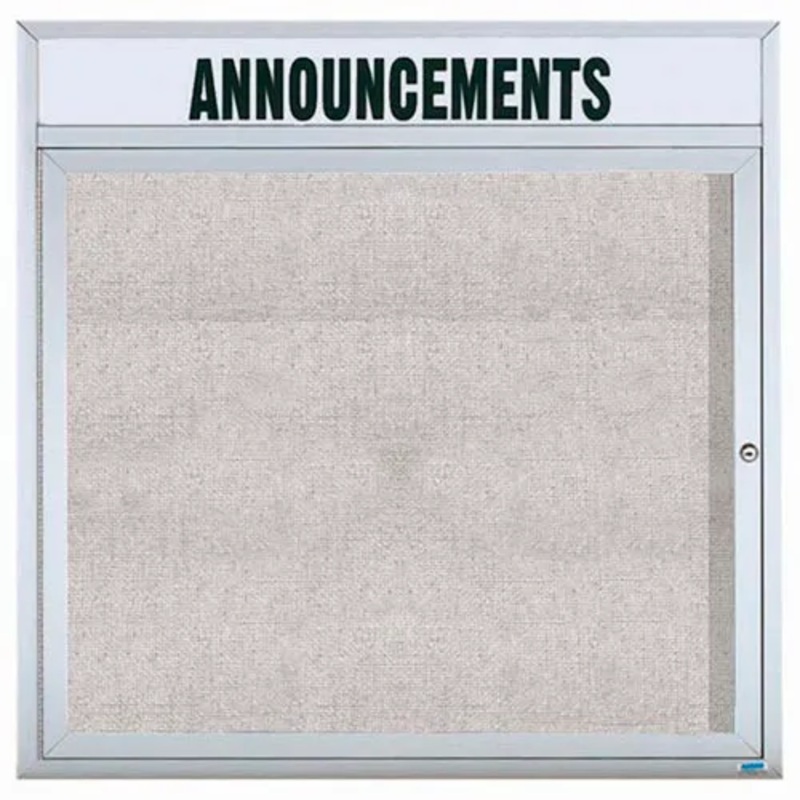Aarco 1 Door Enclosed Alum Framed Bulletin Board w/ Header, Illuminated – 36″W x 36″H
