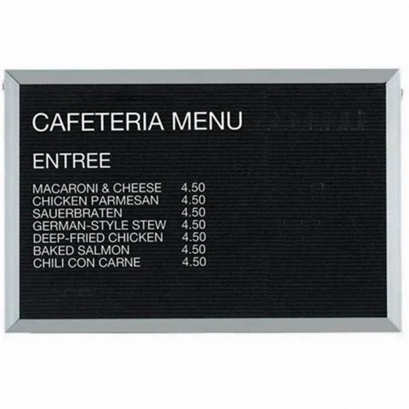 This Classic black felt covered board with an attractive aluminum frame is precision grooved on 1/4" centers to accept our universal quick change letters to create your own sign in minutes or change to suit your needs. One free set of 3/4" Helvetica letter