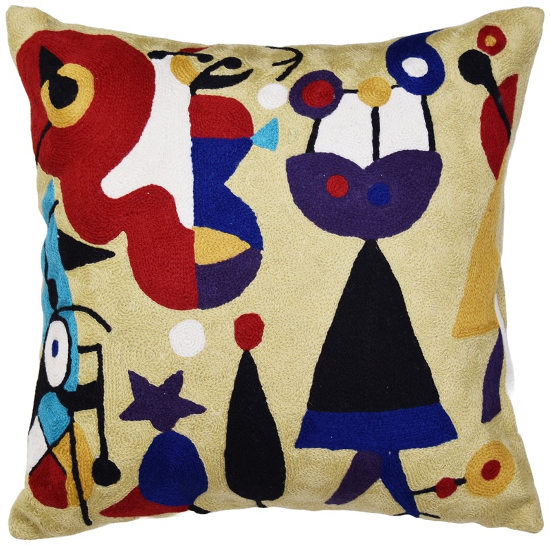 Enhance your home decor with this surrealism artwork inspired modern accent pillow cover. These modern accent pillow covers are invibrant colors, playful forms, abstract and symbolic elements, and a sense of spontaneity and experimentation.The juxtaposition of various elements inspired artwork overlays the entire base with soft wool, stitch by stitch, creating a showpiece of extraordinary craftsmanship.