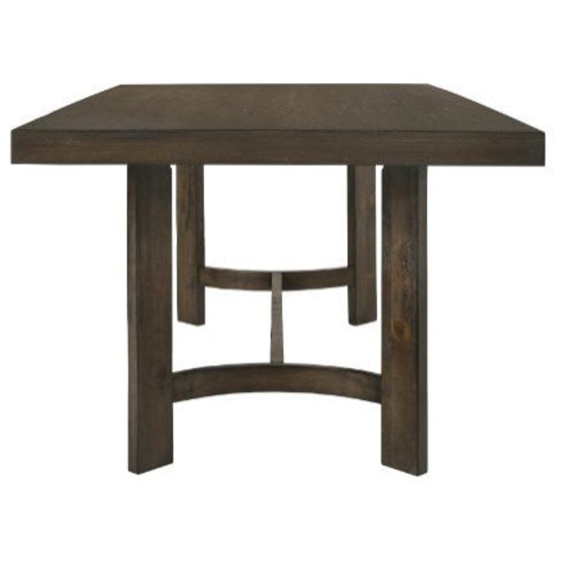 Description: Sit down and dine in style with this must-have Farren dining group. It showcases an effortless yet beautiful trestle base. The table is finished in an espresso color that highlights the beauty of the wood. Try setting it at the center of your