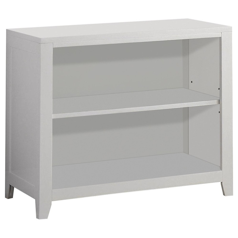 The Lacey collection bookcase with espresso finish has two shelves chambered trim, and metal knobs. This bookcase combine with modern look and function to provides great storage for youth bedroom in your home -Lacey Collection -2 Shelves -White finish -Sol