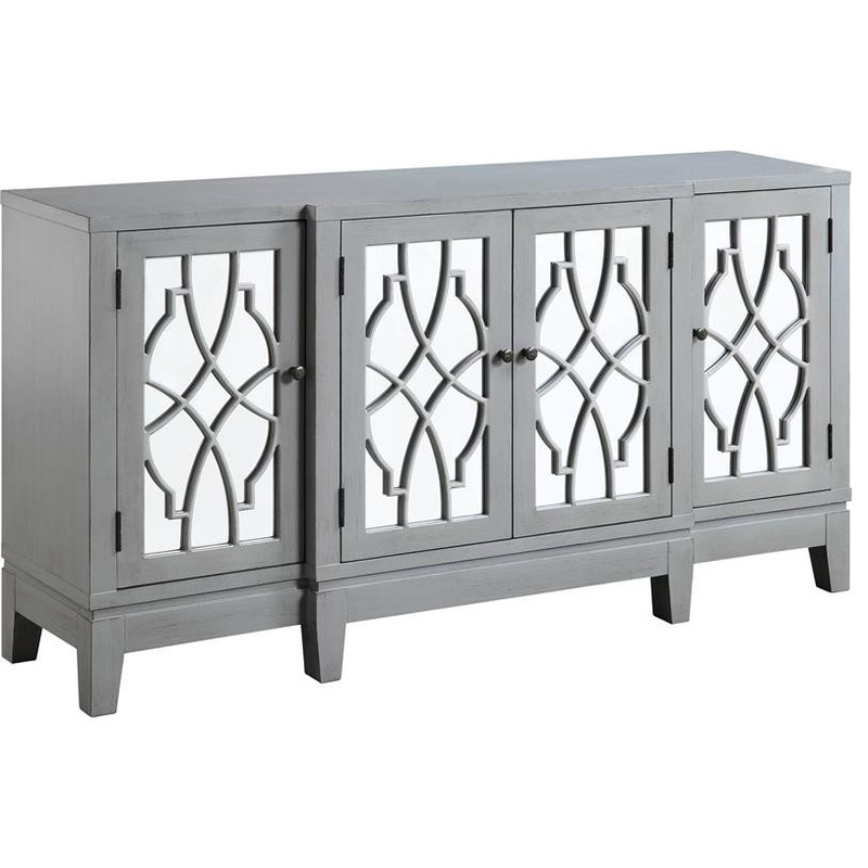 ACME Magdi Wooden Console Table with 4 Mirrored Doors in Antique Gray – Transitional – Console Tables – by Homesquare
