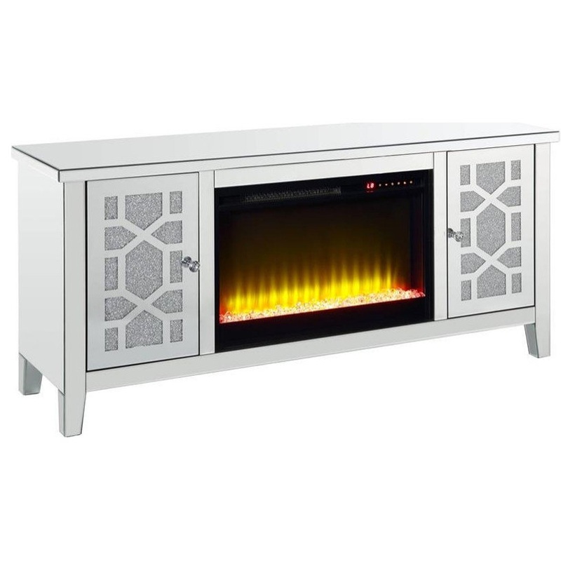 ACME Noralie TV Stand with Fireplace in Mirrored & Faux Diamonds – Contemporary – Entertainment Centers And Tv Stands – by Homesquare