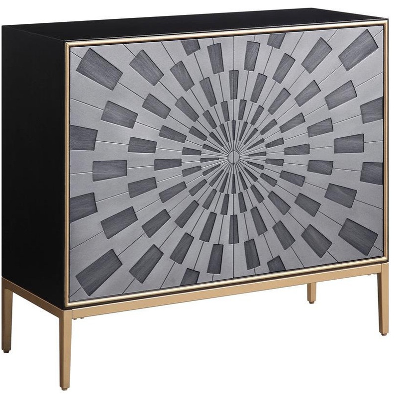 Rejuvenate your home with this statement-making accessory that feels fresh, on-trend, but timeless. The console table reflects a lively contemporary style through a two-tone burst pattern on the door front accentuated by straight and elegantly curved lines. Brass metal border with legs adds a touch of drama and luxury to black finish on the wooden frame. Rectangular tabletop and six storage compartments behind doors can provide ample surface area and storage space.