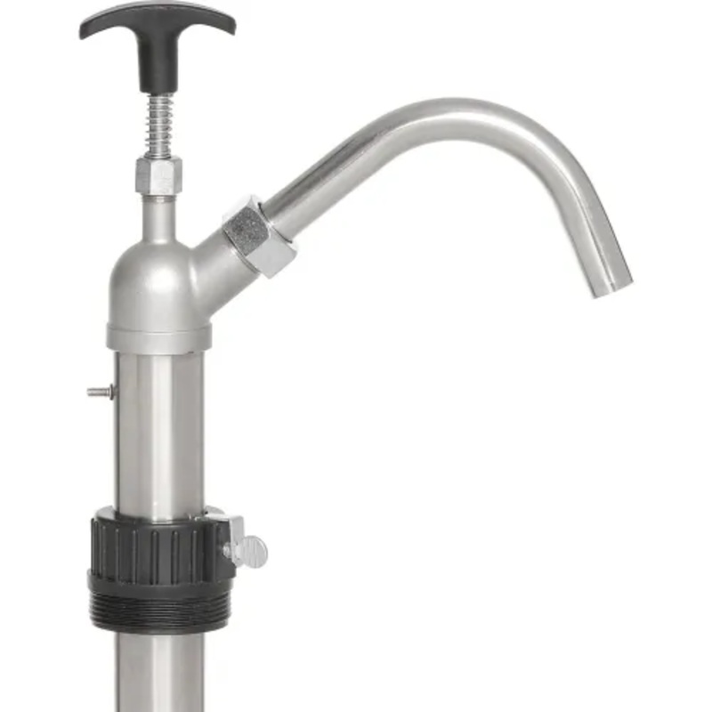Action Pump STAINLESS STEEL DRUM PUMPStainless steel drum pump can be used on 15, 30 and 55 gallon drums. Drum pump fits 2" bung opening and the collar adjusts for depth. Includes 2" bung, 41" long body, 1-1/2" outer body diameter. Stainless steel drum pum