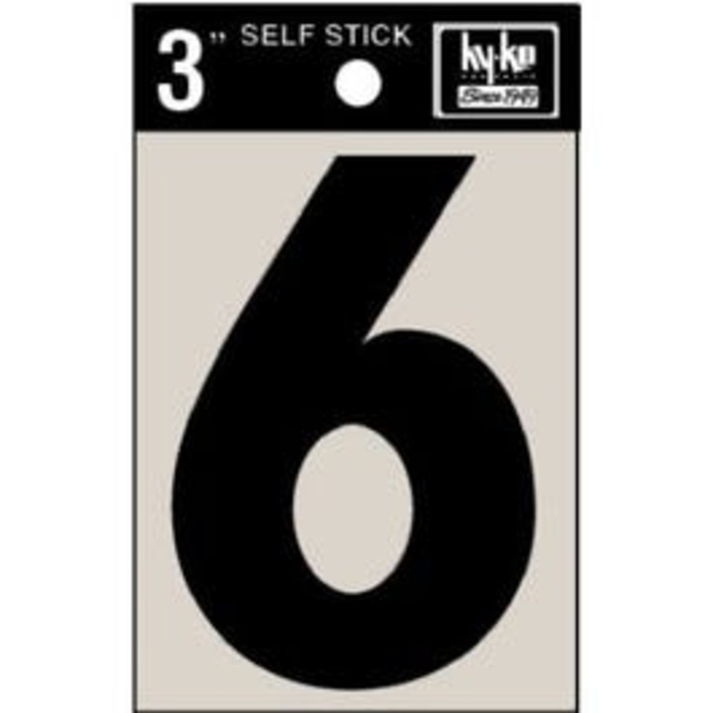 Address Numbers, 6, Black Vinyl, Adhesive, 3-In.