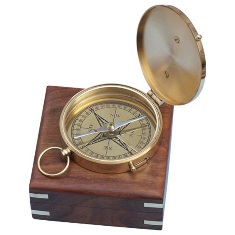 --The Hampton Nautical Admiral's Compass is truly a great gift the distinguished nautical enthusiast in your life. This 4-inch diameter compass is a solid brass and features a solid brass shell and face.--Press the push button to reveal the compass. The co