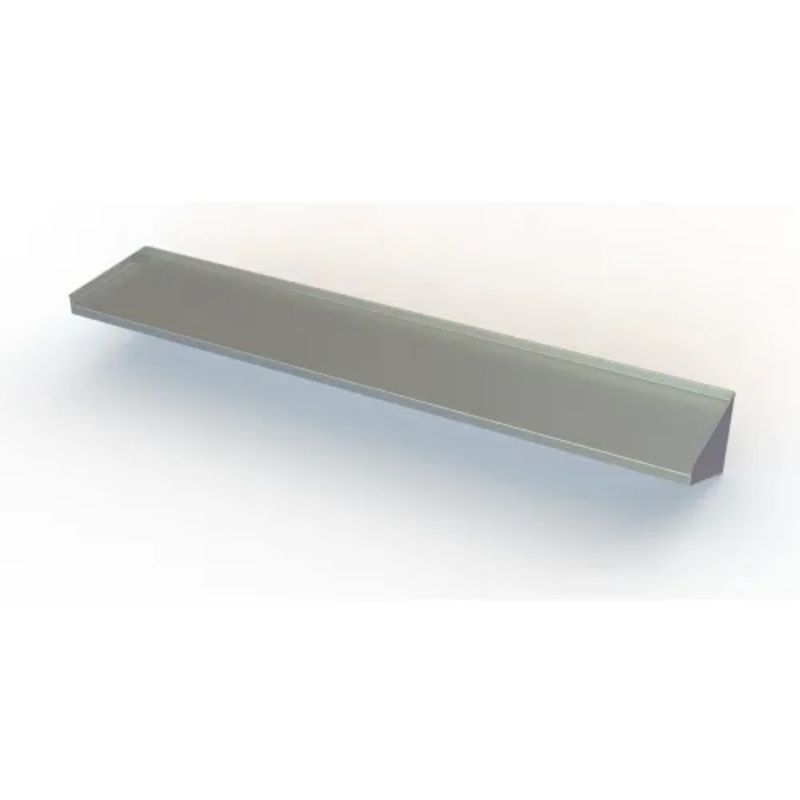 These 12" deep shelves have a sanitary downward rolled edge and a 1"raised lip on sides and back.16-gauge stainless steel construction. Mounting hardware included.