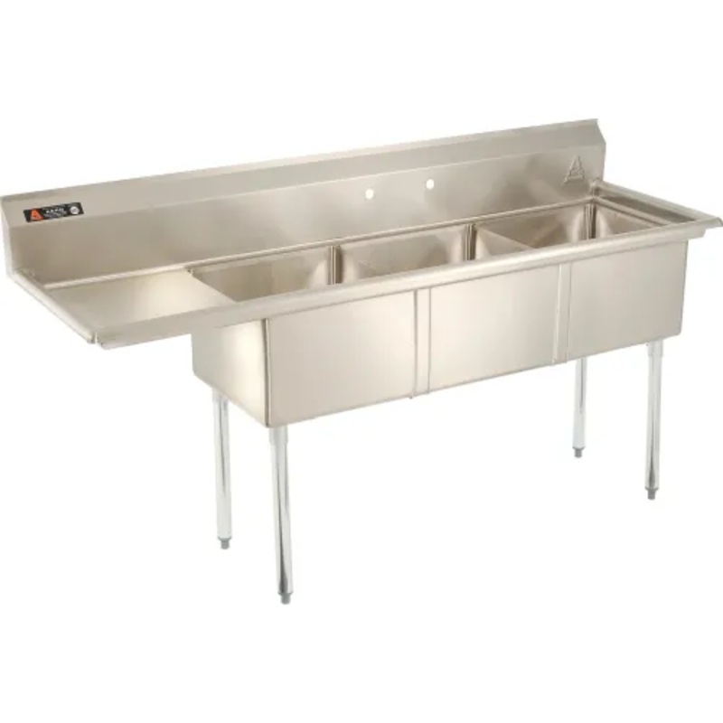 Aero Manufacturing Company AF3-181 3 Compartment Sink, 18 x 18, Left Side Drainboard