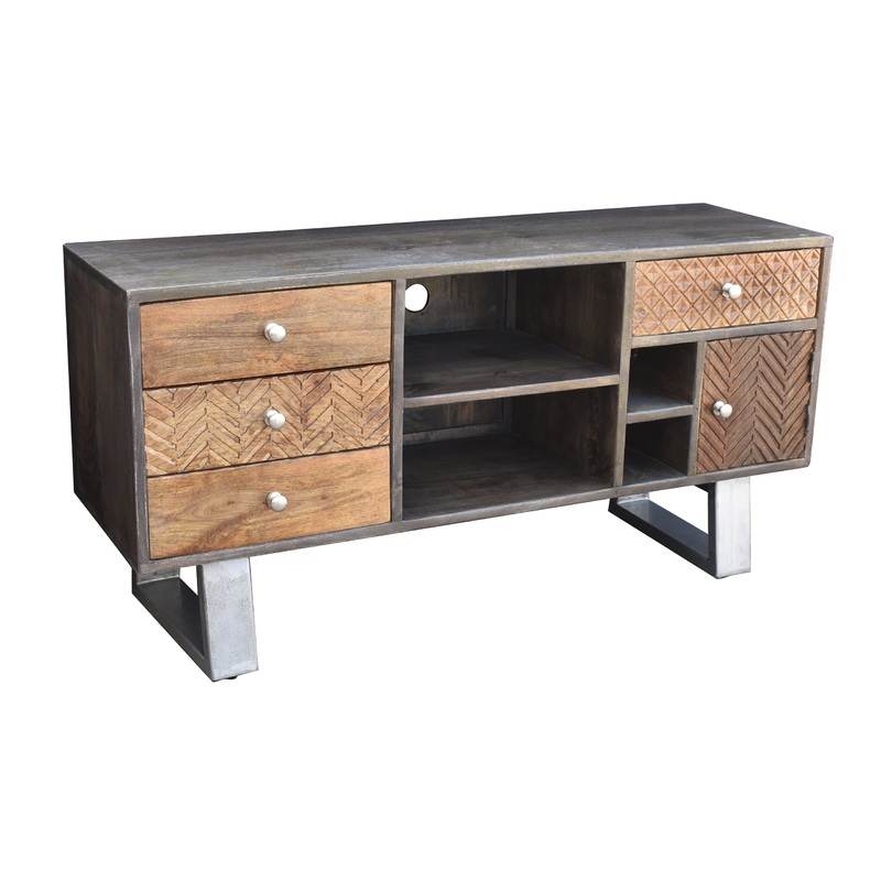 Akot Mango Wood Media Center With 4 Drawers – Industrial – Entertainment Centers And Tv Stands – by Chic Teak