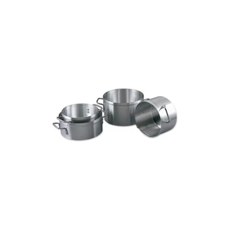 Dent resistant aluminum up to 1/4″ wide these heavy duty pots have the strength and durability. Aircraft alloy rivets attach handles.