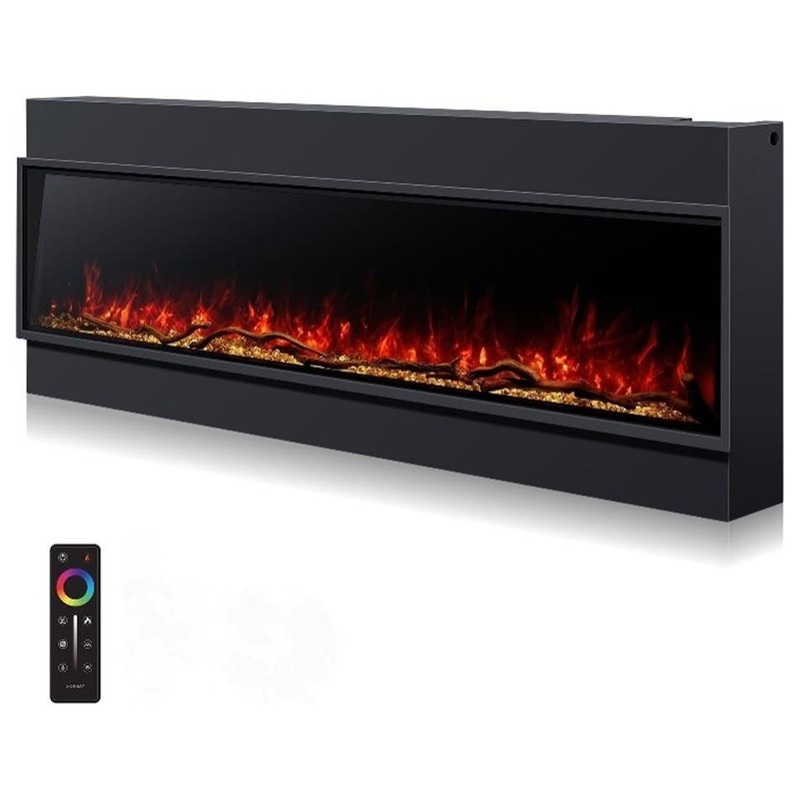 ALEXENT Recessed 56″ black Electric Fireplace WiFi Remote Wall Mount Flame Color – Transitional – Indoor Fireplaces – by Homesquare