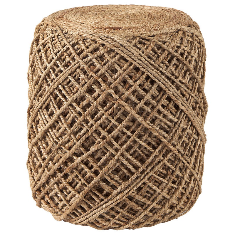 Allium 15.7Lx15.7Wx17.7H Brown Wool Round Jute Pouff – Beach Style – Floor Pillows And Poufs – by Mercana