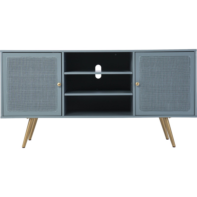 Bring home a retro feel with this low-profile media cabinet. Spacious cabinets organize everything from movies and books to toys and pet gear, while natural rattan accents add unique texture to your space. Adjustable media shelves hold game consoles and receivers, keeping all your media necessities tidy and accessible. Kick back and relax with your favorite movie when you add this TV stand with storage to your living room or open concept space.