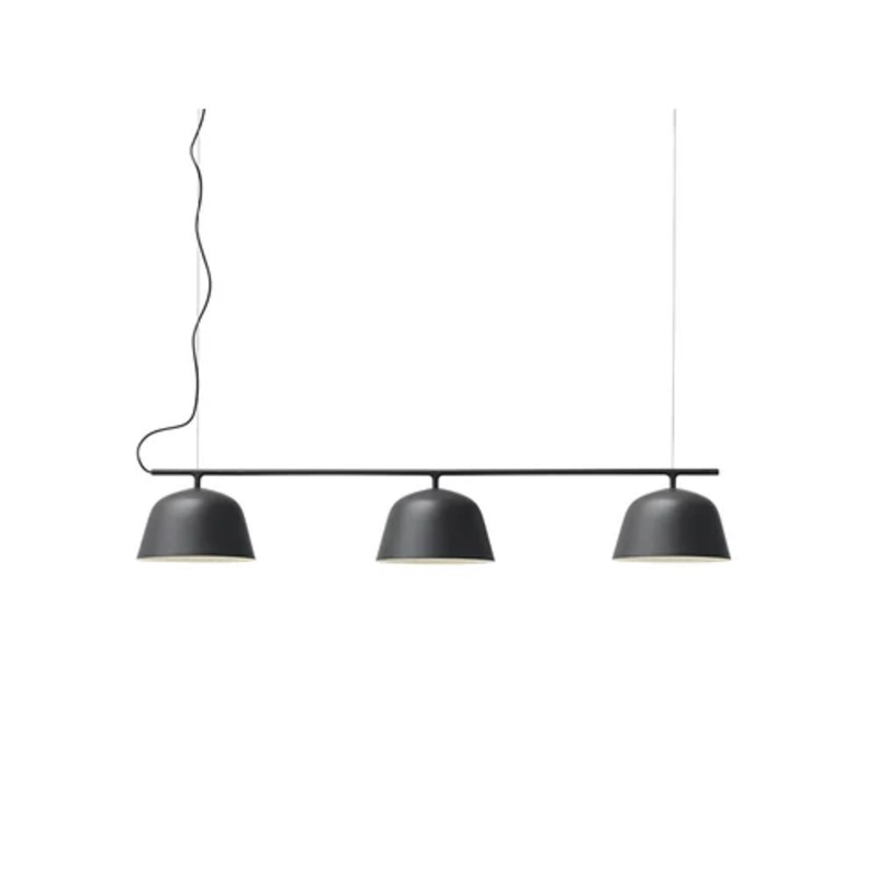 Designed by TAF Architects for Muuto, Ambit Rail is a suspension lamp made with extruded aluminum frame and spun aluminum diffusers.