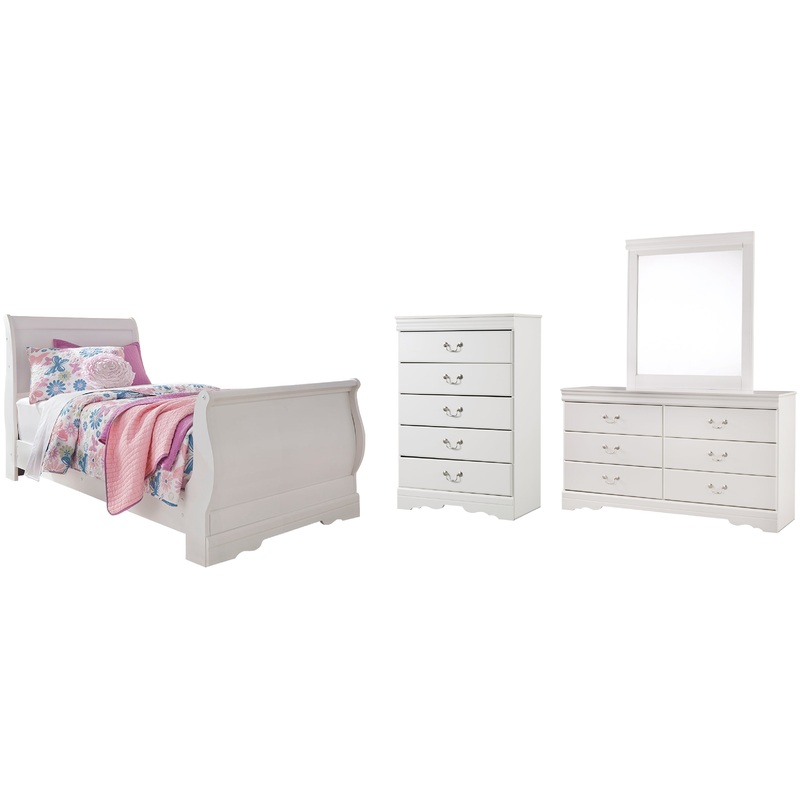 Anarasia Twin Sleigh Bed with Mirrored Dresser and Chest
