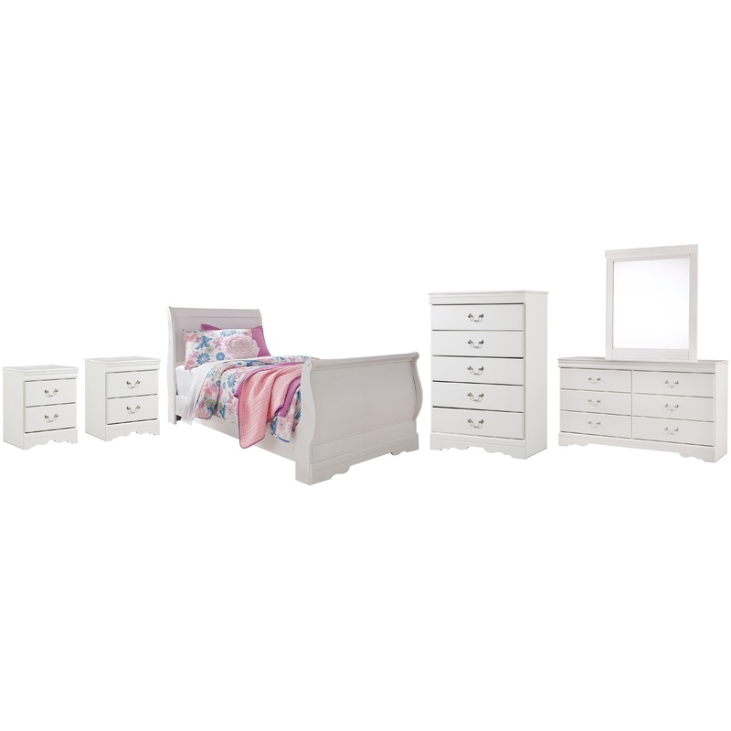 Anarasia Twin Sleigh Bed with Mirrored Dresser, Chest and 2 Nightstands
