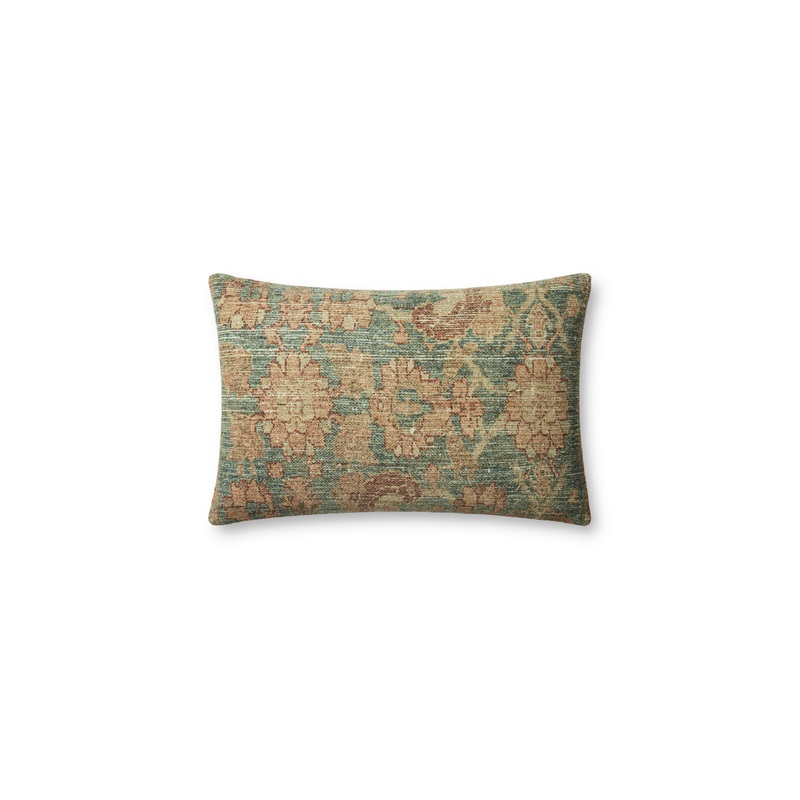 The Clay throw pillow has a vintage rug-inspired design with faded red terracotta flowers against a soft teal background, created by Angela Rose in collaboration with Loloi. Model # (MPN)DSETPAR0002TETCPIL5Product ID195063463Manufactured ByLoloi Inc.Sold B
