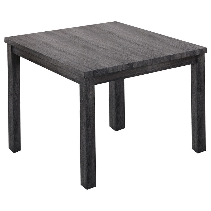 Add a farmhouse and transitional style to your dining room with this Antique Grey Wood finish. Made of solid and manufactured wood. The counter height table is in a square shape and can fit up to 6 counter height chairs.