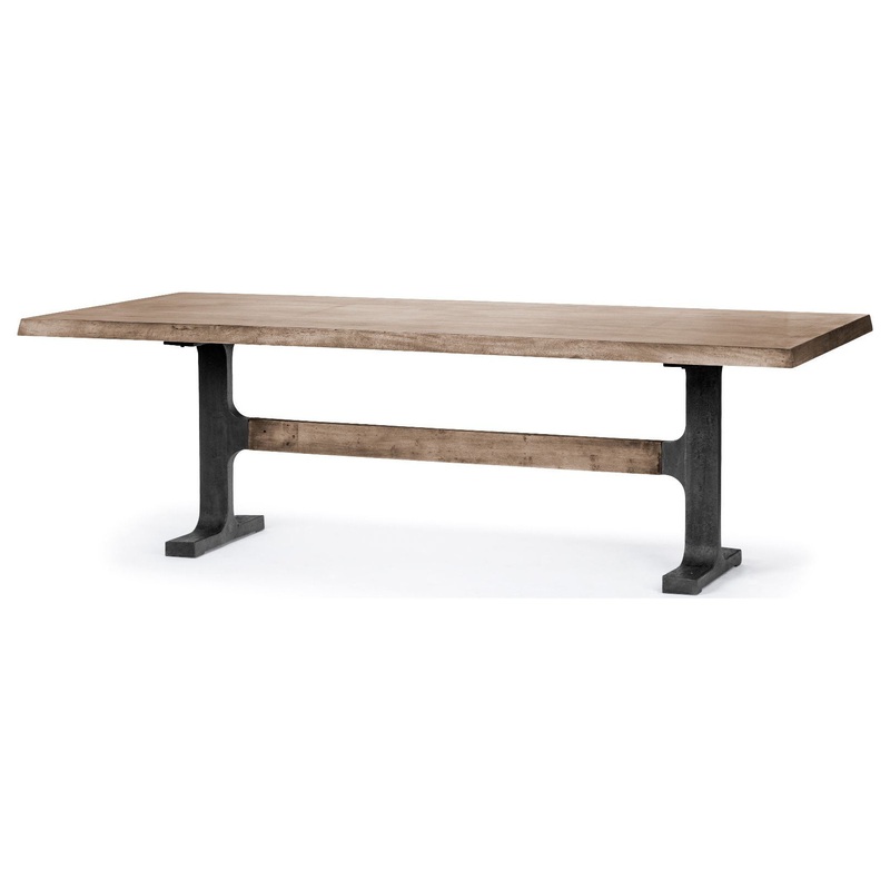 The Araxi is an impressive, rectangular, wooden dining table. It flaunts a stunning wooden top braced by a trestle-style, iron base.