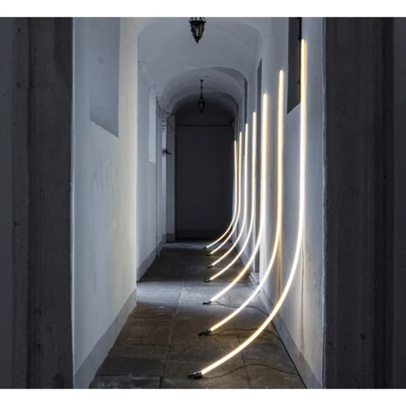 Flexible headband is the collection of light elements created by Theo Sogni in 2013 for Antonangeli lighting. Spring steel coextruded in silicon for this floor lamp / wall with infinite potential for the private environments or for Contract. This version of the lamp flexible headband can be applied to the wall by bending the light element obtaining custom spellings. Structural elements in chromed metal. Designed for multiple uses and solutions, Bow has the driver on the wire with controller included. Modern technology in the service of each customer. RGB: 120 Led / mt, 20w / mt. – Led 24V – 48W – 220v