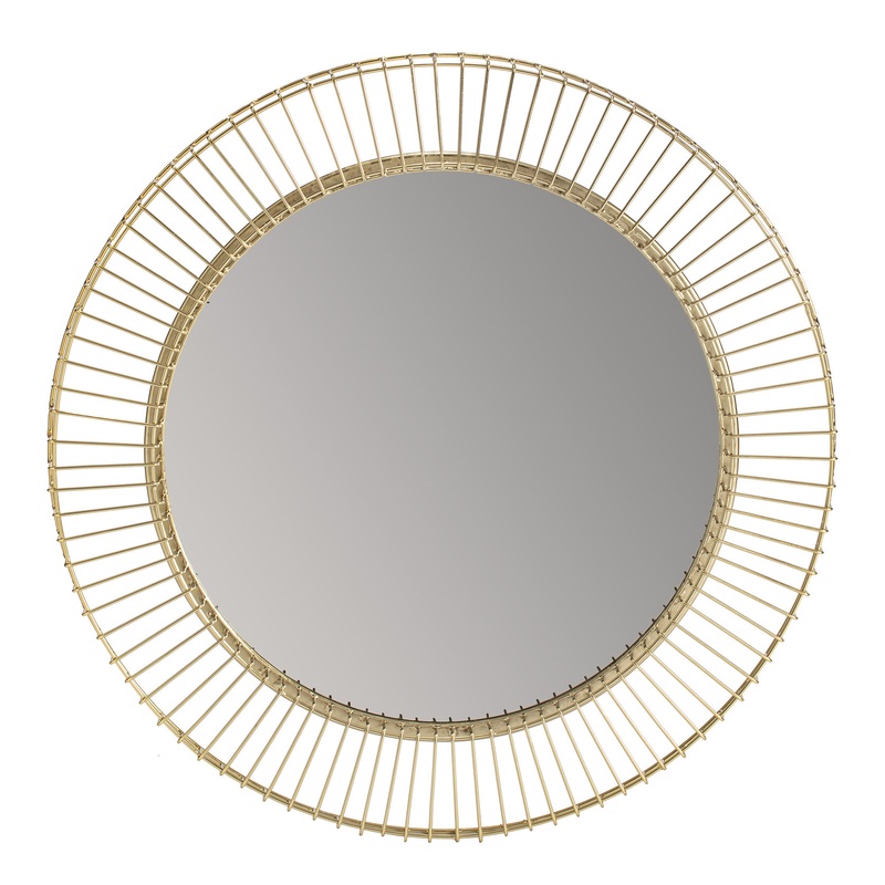Elegant and embellished, this gold mirror will add style and brightness to any wall you hang it on! The halo of golden beams adds a sleek and chic frame to this round mirror. Argus Gold Wall measures 24-in long by 24-in wide. Elegant round mirror with gold