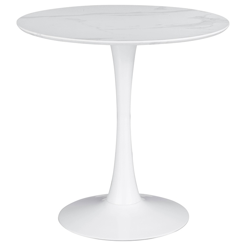 Inspired by classic mid-century design, this round dining table brings timeless elegance to any space. The smooth faux marble top offers a refined aesthetic while providing easy maintenance with a durable polyurethane sealer. A sleek tulip base enhances its sculptural appeal, creating a striking yet minimalist silhouette. Ideal for small dining areas or breakfast nooks, this table comfortably seats two, making it perfect for intimate meals, coffee chats, or stylish home office use.