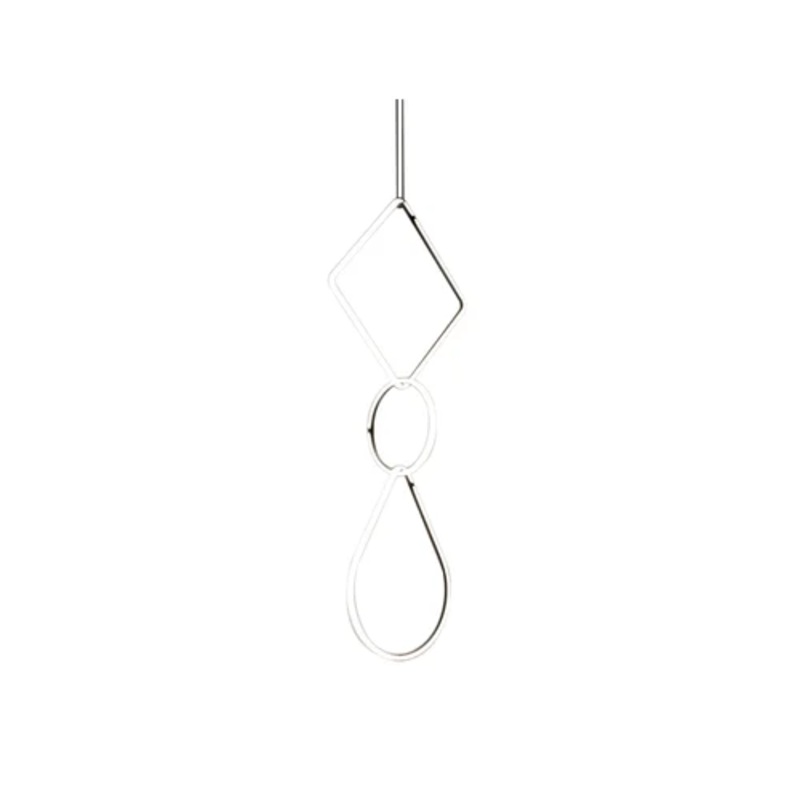 Arrangements are geometrical elements that can be combined eachother in different unique compositions. Any unit joins to the others in a simply and balanced way making a lighting chain. For the creation of this collection Michael Anastassiades took inspiration from the similarities between light and jewels, starting from the common point that both are designed to be weared and lived.Composition5 includes:Large rose . 18 cm – H. 9 cm, max 190W, Cod. F0415030;Large Square Element L. 52 cm – H. 52 cm, 34W, Cod. F0409030.Small Round Element . 40 cm, 21W, Cod. F0406030;Drop Up Element L. 50 cm – H 70 cm, 32W, Cod. F0414030;