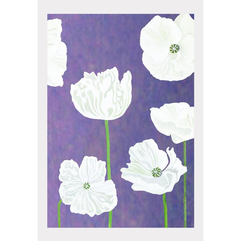 Art Print: White Poppies on Violet by India & Purry