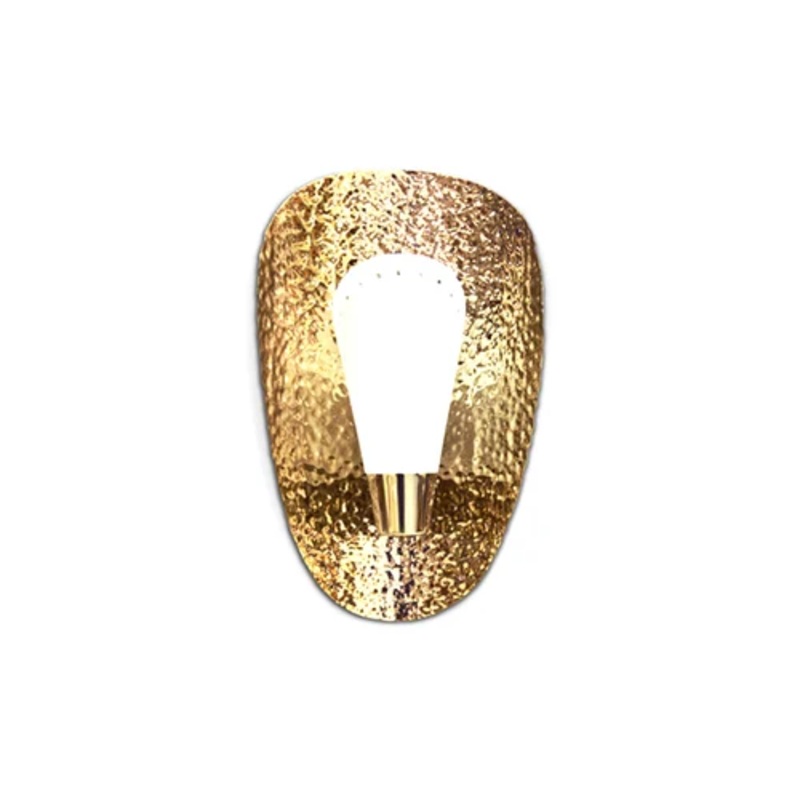 Aruna Wall LampAruna is a wall lamp signed by Brabbu. Shell in hammered gold plated brass and shader in matt black or white lacqered with gold plated brass. Aruna is inspired by the reflections of the sun in the morning on the Thai temple Wat Arun. Metapho
