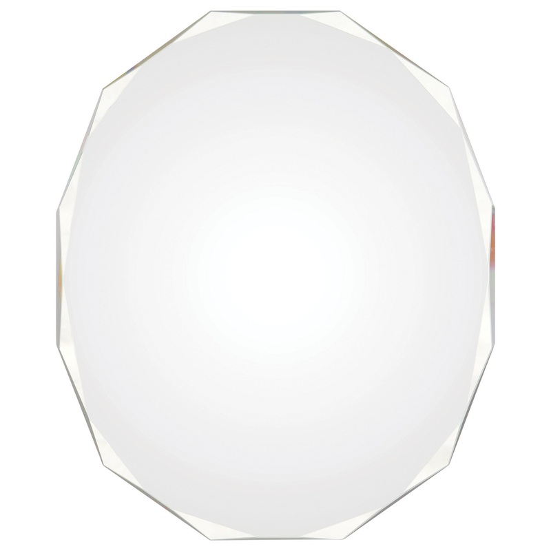 A unique polygonal shape makes this polished all-glass mirror an elegant addition to any room. May be hung horizontally of vertically. -SHAPE: Irregular -FINISH: All glass -Unframed -FRAME MATERIAL: All glass -FRAME FINISH: All glass -HANGING DIRECTION: Bo
