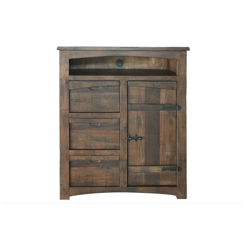 The Atlantic Bedroom Collection by Crafters and Weavers features multi-wood panels and hand wrought decorative hardware to create a look of refined well-traveled wood as if it was once part of an old ship on the Atlantic Sea. -Dimensions 43" w 18"d 48" h -