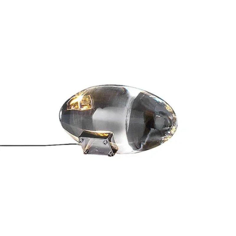 This table lamp was born from a happy inspiration of designer Enzo Catellani during a trip to India. It was there that he was struck by a culture of silence and chaos, and discovered oval-shaped sacred stones, which he decided to recreate in crystal, calling them “Atman”, a word that means “soul” in Sanskrit. Atman therefore consists almost entirely of the crystal diffuser, which makes it light and whose nickel-plated base is used as an almost invisible support and container for the light source. The light emission passes through the diffuser and emerges from it with unique reflections, exploiting the shape and material with which it is made. Atman is a lamp with a strong scenic presence, whose versatility will allow it to be used in a living room, as in an office, or even in a bathroom, without diminishing its potential, but rather enhancing each environment even more by making it unique thanks to its unique light.