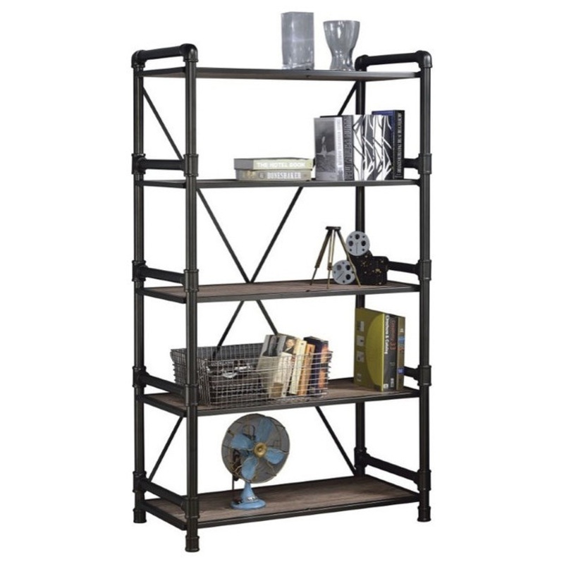 Atos 5 Shelf Pipe Metal and Wood Bookshelf – Industrial – Bookcases – by Totally Home Totally Kids Furniture