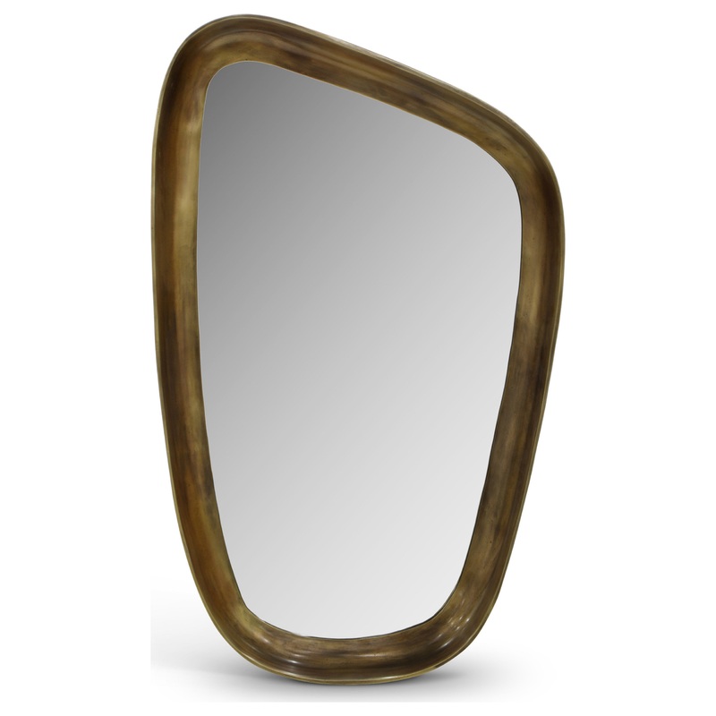 Add dimensional appeal and remarkable style to your room with this Auberge brass mirror. Featuring an antique brass finish and an aluminum metal frame, its contemporary design seamlessly blends sophistication with durability. Perfect for creating a focal point in any space, this mirror not only reflects light but also enhances your room’s ambiance with its timeless elegance. Whether placed in a hallway, living room, or bedroom, it exudes a sense of modern charm and artistic flair, elevating your decor with understated luxury.