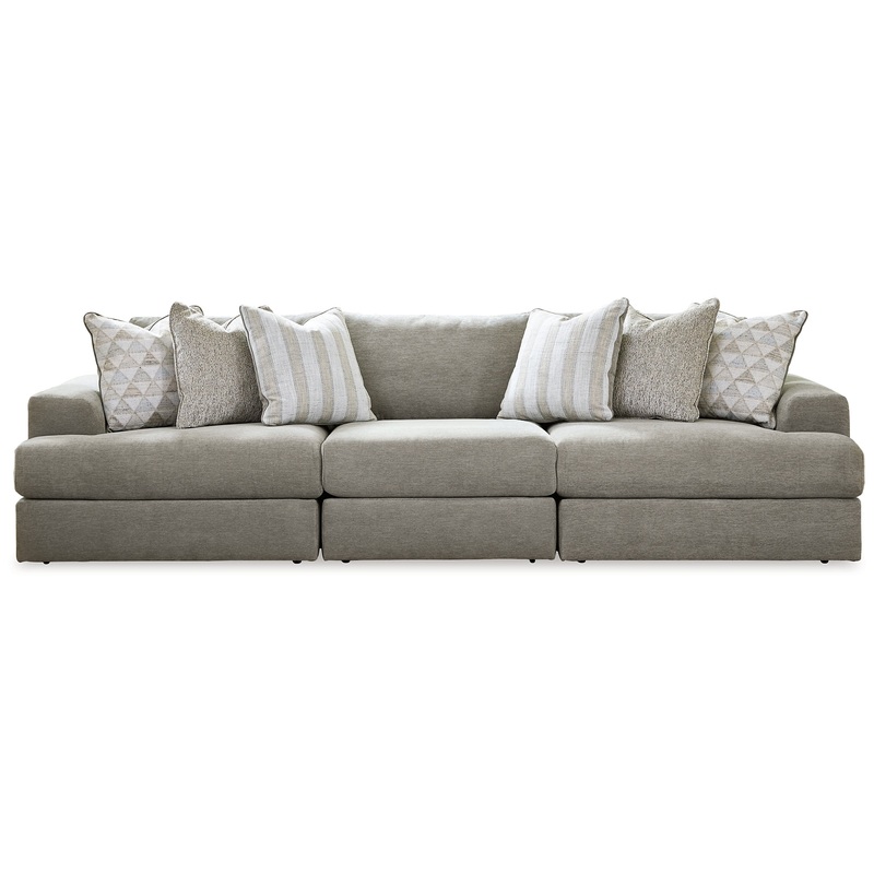 The casual, low-slung shape of this sectional makes it fully lounge-ready. Its deep seating invites you to sink right in, with bold beveled block arms that are softened by bullnose waterfall cushions. Best of all, the modular design lets you stage the piec