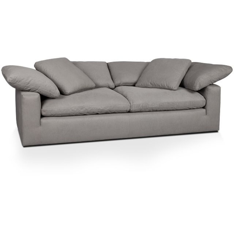 Model: 9709151Dimensions: 145.50w x 38.50h x 90.00lAll features: performance fabric removable cover reversible reversible cushionsLeg height: 1.75Pattern: solid colorLeg material: plasticType of back cushion: removableNumber of seat cushions: 4Seat cushion