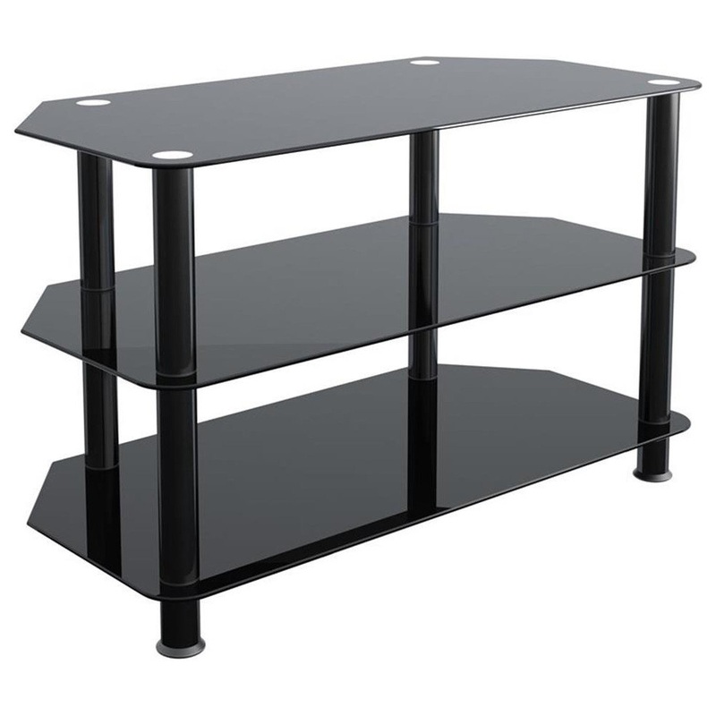 SDC800-A. The SDC family is a simple, attractive, and versatile series of A/V stands and tables, in multiple sizes. The high quality, easy to assemble stands blend with virtually any decor. The AVF SDC800-A supports flat panel TVs up to 42″. The black tempered glass and durable chrome legs modernize any space while the angled corners provide multiple room placement options including into corners to maximize space and viewing angles. Arrange your various AV components on the middle and bottom shelves.
