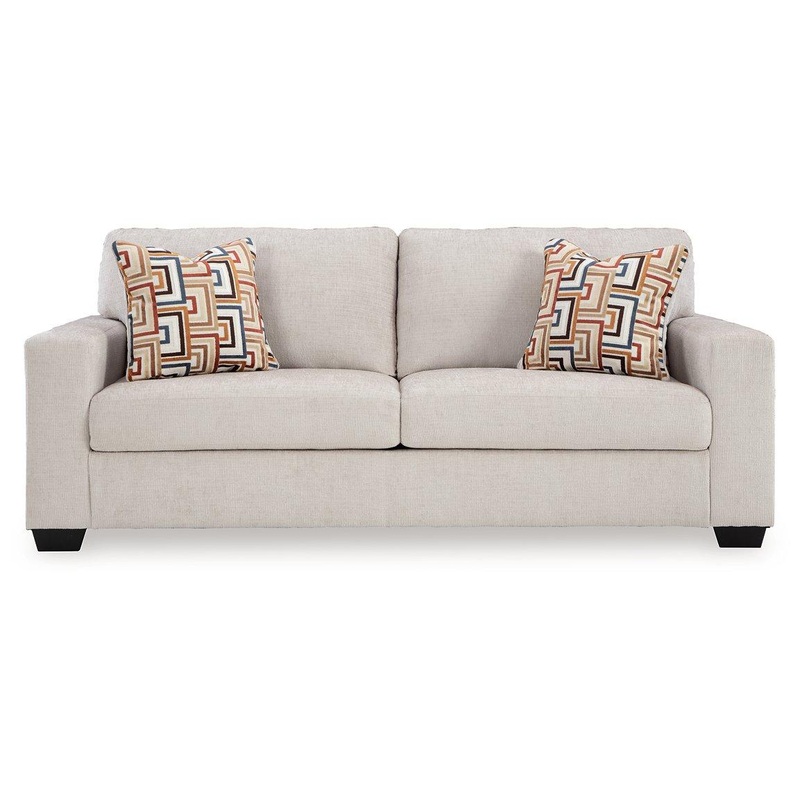 Looking to make a simply chic statement with color? Liven up your living room with this sofa. Its trend-right light neutral upholstery is a perfect blank canvas for adding pops of color. Bold and eclectic accent pillows complete the look. Pairing posh styl